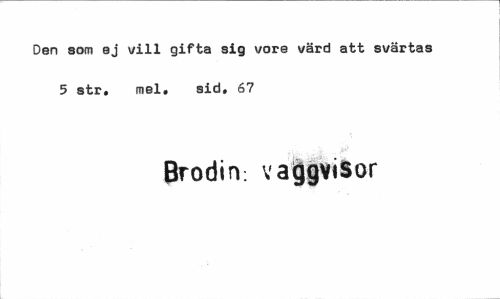 //// Den som ej vill gifta sig vore värd att svärtas 5 str. mel, sid. 67 //// Brodin: vaggvisor ////