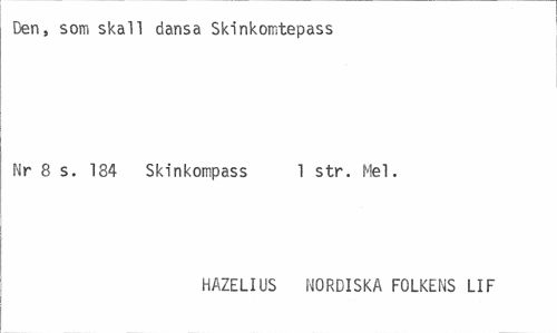 //// Den, som skall dansa Skinkomtepass //// Nr 8 s. 134 Skinkompass 1 str. Mel. //// HAZELIUS NORDISKA FOLKENS LIF ////