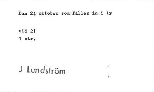 //// Den 24 oktober som faller in i år //// sid 21 1 str. //// J Lundström //// ¦4 ////