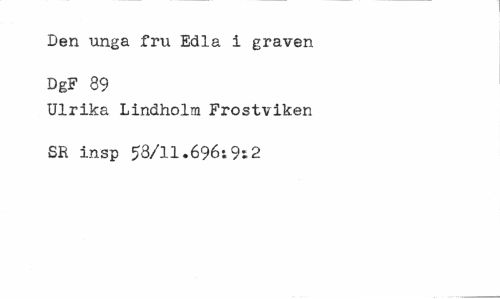 //// Den unga fru Edla i graven DgF 89 //// Ulrika Lindholm Frostviken SR insp 58/11.696:9s2 ////