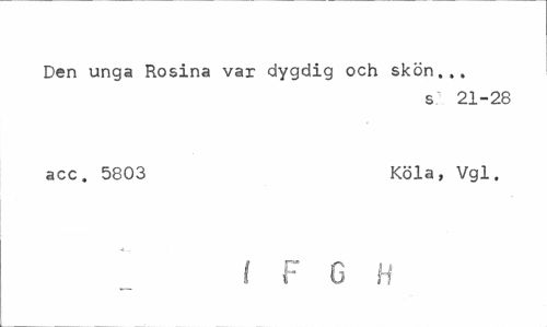 //// Den unga Rosina var dygdig och skön.,, //// s 21-28 //// acc. 5803 Köla, Vgl. //// ! F C B ////
