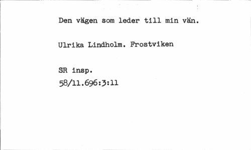 //// Den vägen som leder till min vän. Ulrika Lindholm. Prostviken //// SR insp. 58/11.696:3:11 ////