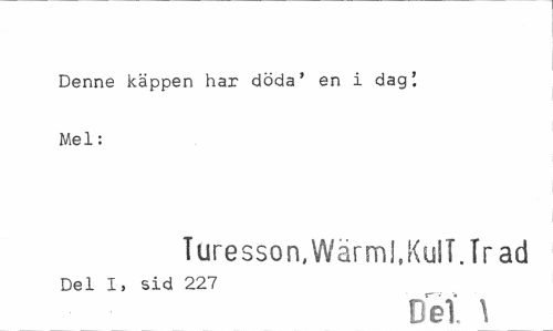 //// Denne käppen har döda' en i dag'. Mel: //// Turesson.Wärml.KulT.Trad //// Del I, sid 227 //// Del \ ////
