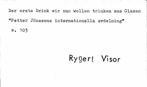 //// Ler erste Drink wir nun wollen trinken aus Glasen "Petter Jönssons internationella avdelning" s. 103 //// Ryg ert Visor ////