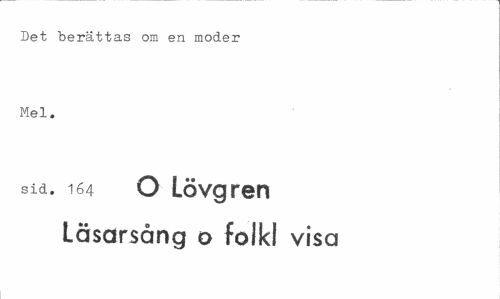 //// Det berättas om en moder Mel. //// sid. 164 O Lövgren //// Läsarsång o folkl visa ////