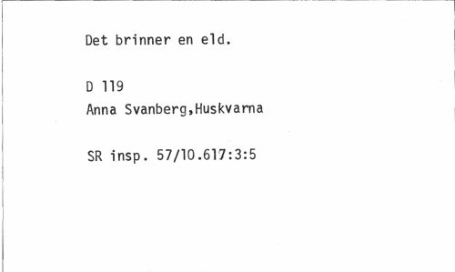 //// Det brinner en eld. D 119 //// Anna Svanberg,Huskvarna SR insp. 57/10.617:3:5 ////