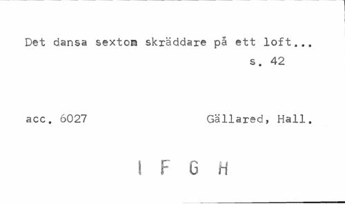 //// Det dansa sextom skräddare på ett loft,., //// s. 42 //// acc. 6027 Gällared, Hall. //// ! F G H ////