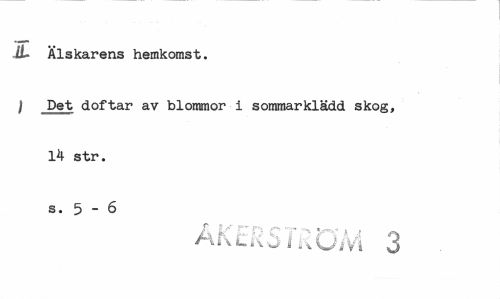 //// JL Älskarens hemkomst. //// I Det doftar av blommor i sommarklädd skog, 14 str. s. 5 - 6 //// f ijr r- ,*•» -r- « — //// AKCK5 iKU/Vl 3 ////