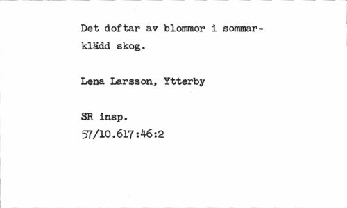 //// Det doftar av blommor cccxliii sommar- //// klädd skog. //// Lena Larsson, Ytterby //// SR insp. 57/10.617:46:2 ////