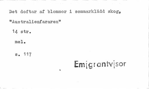 //// Det doftar af "blommor i sommarklädd skog, "Australienfar ar en" 14 str. mel. //// s. 117 //// Emlgrontvjsor //// v ////