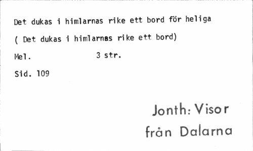//// Det dukas i himlarnas rike ett bord för heliga ( Det dukas i himlarnas rike ett bord) Mel. 3 str. //// Sid. 109 //// Jonth: Visor från Dalarna ////