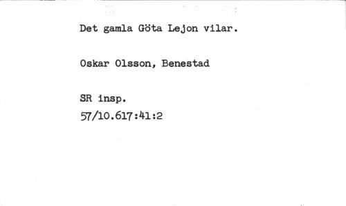 //// Det gamla Göta Lejon vilar. //// Oskar Olsson, Benestad. //// SR insp. 57/10.617:41:2 ////