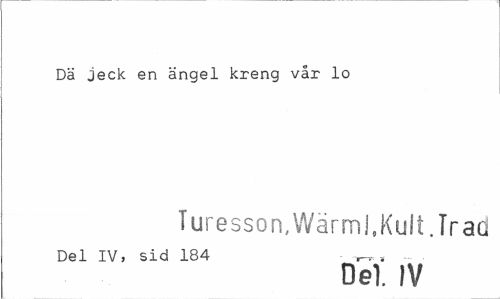 //// Dä jeck en ängel kreng vår lo //// Turesson,Wärml,Kult.Trad //// Del IV, sid 184 ^ , _ //// Del. IV ////