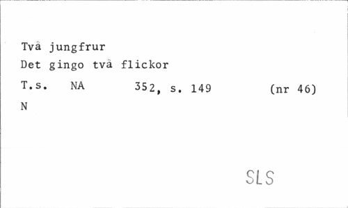 //// Tvä jungfrur //// Det gingo tva flickor //// T's» NA 352, s. 149 (nr 46) //// N //// SLS ////