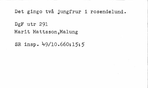 //// Det gingo två jungfrur i rosendelund. //// DgF utr 291 //// Marit Mattsson,Malung //// SR insp. ^9/10.660:15:5 ////