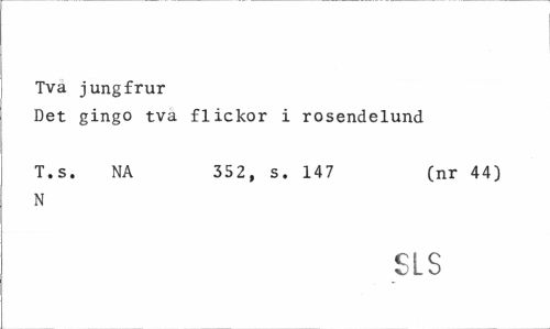 //// Tva jungfrur //// Det gingo tva flickor i rosendelund //// T.s. NA 352, s. 147 (nr 44) //// N //// SLS ////