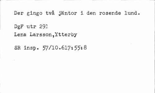 //// Der gingo två jäntor i den rosende lund. //// DgF utr 291 //// Lena Larsson,Ytterby //// SR insp. 57/10.617:55*8 ////