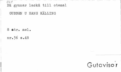 //// Dä gynnar lackä till otemal GUBBEN U HANS KÄLLING //// 8 atr. mel. nr.36 s.48 //// r //// Gutcviso r ////