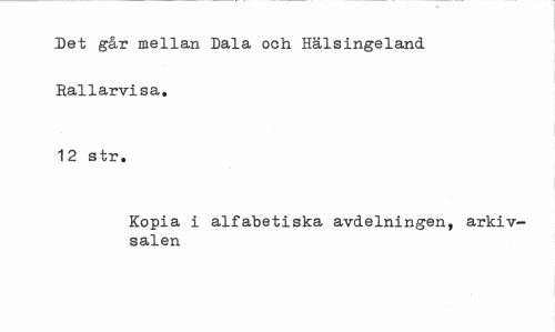 //// Det går mellan Dala och Hälsingeland Rallarvisa. //// 12 str. //// Kopia i alfabetiska avdelningen, arkivsalen ////