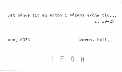 //// Det hände sig en afton i vårens sköna tid... //// s. 19-20 //// acc. 6078 Morup, Hall. //// I F G H ////