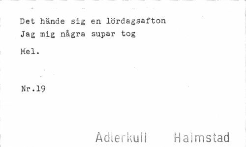 //// Det hände sig en lördagsafton Jag mig några supar tog //// Mel. Nr. 19 //// Adierkull Halmstad ////