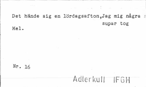 //// Det hände sig en lördagsafton,Jag mig några : //// supar tog //// Mel. Nr. 16 //// -Adlerkuil IFGH ////
