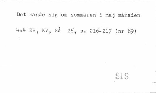 //// Det hände sig om sommaren i maj månaden bxb KH, KV, SÅ 25, s. 216-217 (nr 89) //// SLS ////