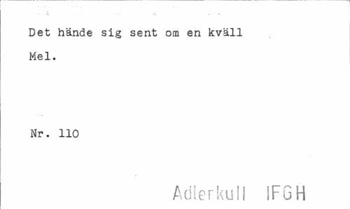 //// Det hände sig sent om en kväll Mel. //// Nr. 110 //// Adierkull IFGH ////