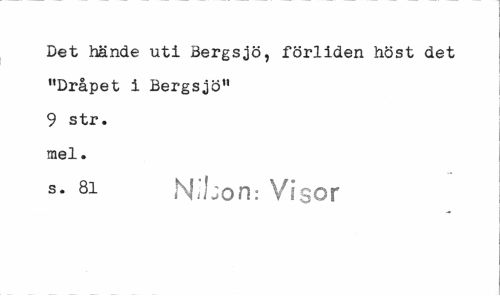 //// Det hände uti Bergsjö, förliden höst det "Dråpet I Bergsjö" 9 str. mel. //// s- 81 Niljon: Visor ////