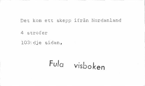 //// Det kom ett skepp ifrån Nordanland //// 4 strofer 103'. dje sidan, //// F"la visboken ////