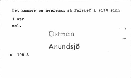 //// Det kommer en hepreman så falsker i sitt sinn //// 1 str mel. //// ¦Si //// östman Anundsjö //// s 196 A ////