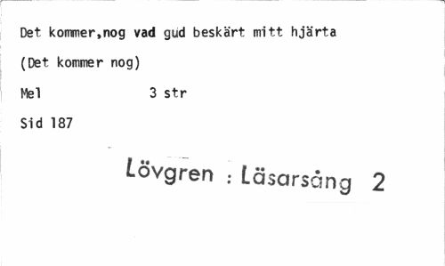 //// Det, kommer,nog vad gud beskärt mitt hjärta //// (Det kommer nog) //// Mel 3 str //// Sid 187 //// Lövgren : Läsarsång 2 ////