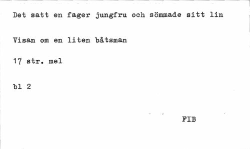 //// Det satt en fager jungfru och sömmade sitt lin //// Visan om en liten båtsman 17 str. mel //// bl 2 //// FIB ////