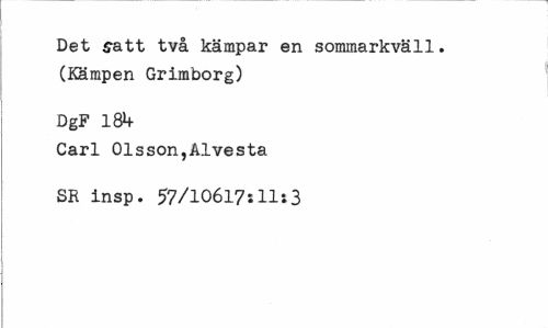 //// Det satt två kämpar en sommarkväll. (Kämpen Grimborg) //// DgF 181+ //// Carl Olsson,Alvesta SR insp. 57/10617x11»3 ////