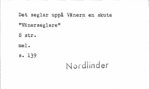 //// Det seglar uppå Vänern en skuta "Vänerseglare" 8 str. mel. s. 139 //// Nordlinder ////