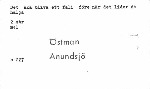 //// Det ska bliva ett fali före när det lider åt häl ja //// 2 str mel //// —* //// ! //// Östman //// a //// s 227 Anundsjö ////