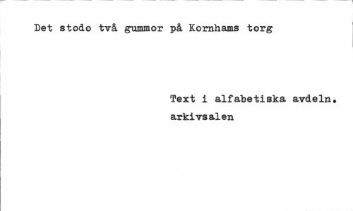 //// Det stodo två gummor på Kornhams torg //// Text i alfabetiska avdeln. arkivsalen ////