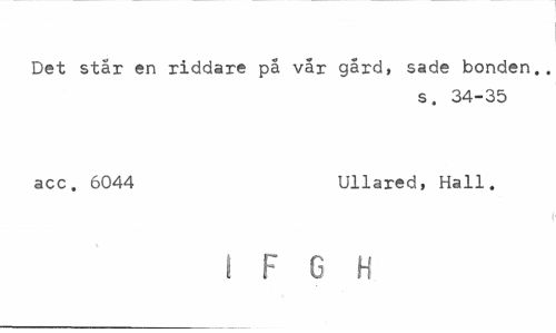 //// Det står en riddare på vår gård, sade bonden.. //// s. 34-35 //// acc. 6044 Ullared, Hall. //// I F G H ////
