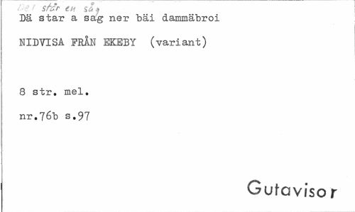 //// srar en so a Dä star a sag ner bäi dammäbroi //// NIDVISA FRÅH EKEBY (variant) //// 8 str. mel. nr.76b s.97 //// Gufaviso r ////