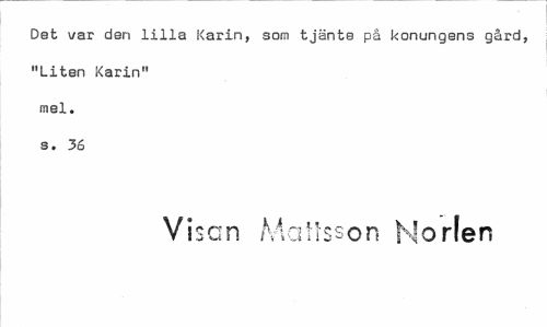 //// Det var den lilla Karin, som tjänte på konungens gård, "Liten Karin" mel. s. 36 //// Visen Mattsson Morlen ////