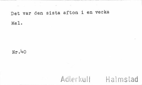//// Det var den sista afton i en vecka Mel. //// Nr.^O //// Adierkull Halmstad ////