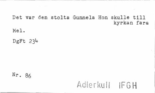 //// Det var den stolta Gunnela Hon skulle till //// kyrkan fara //// Mel. //// DgFt 23b Nr. 86 //// Adierkull IFGH ////