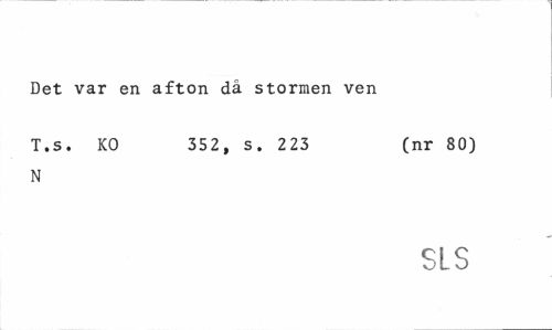 //// Det var en afton då stormen ven //// T.s. KO 352, s. 223 (nr 80) //// N //// SLS ////