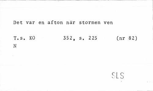 //// Det var en afton när stormen ven //// T.s. KO 352, s. 225 (nr 82) //// N //// SLS ////