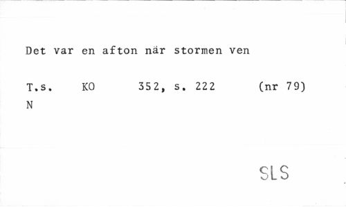 //// Det var en afton när stormen ven //// T.s. KO 352, s. 222 (nr 79) //// N //// SLS ////