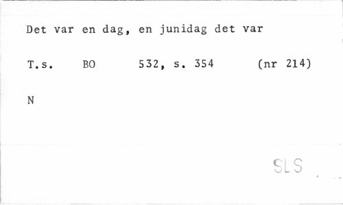 //// Det var en dag, en junidag det var //// T.s. BO 532, s. 354 (nr 214) //// N //// Ci C //// L U ////