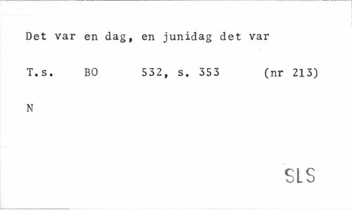 //// Det var en dag, en junidag det var //// T.s. BO 532, s. 353 (nr 213) //// N //// SLS ////