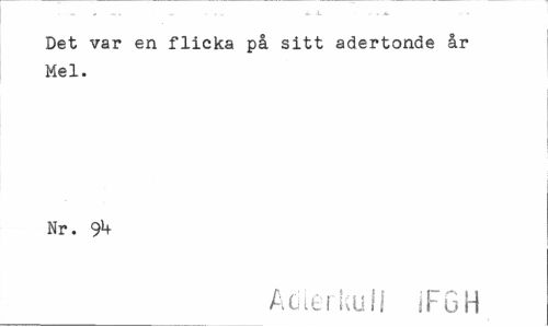 //// Det var en flicka på sitt adertonde år Mel. //// Nr. 9b //// Adierkull sFGH ////