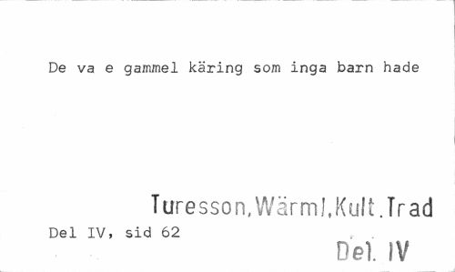 //// De va e gammel käring som inga barn hade //// Turesson.Wärml.Kult.Trad //// Del IV, sid 62 r . //// Del. IV ////