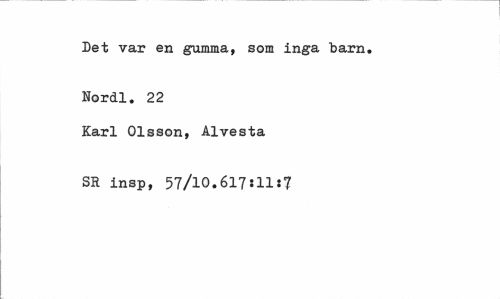 //// Det var en gumma, som inga "barn. Nordl. 22 //// Karl Olsson, Alvesta SR insp, 57/10.6l7:lls? ////